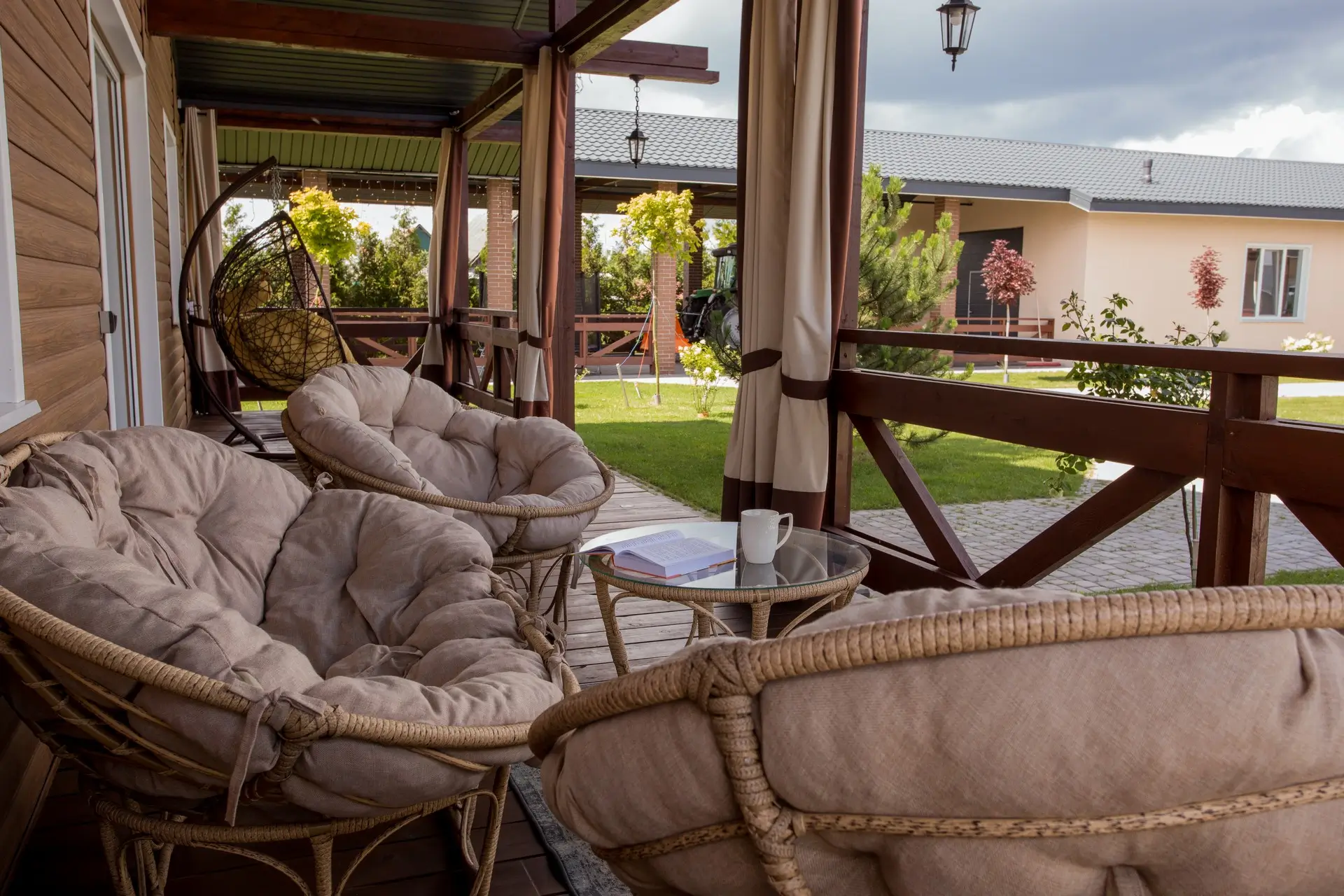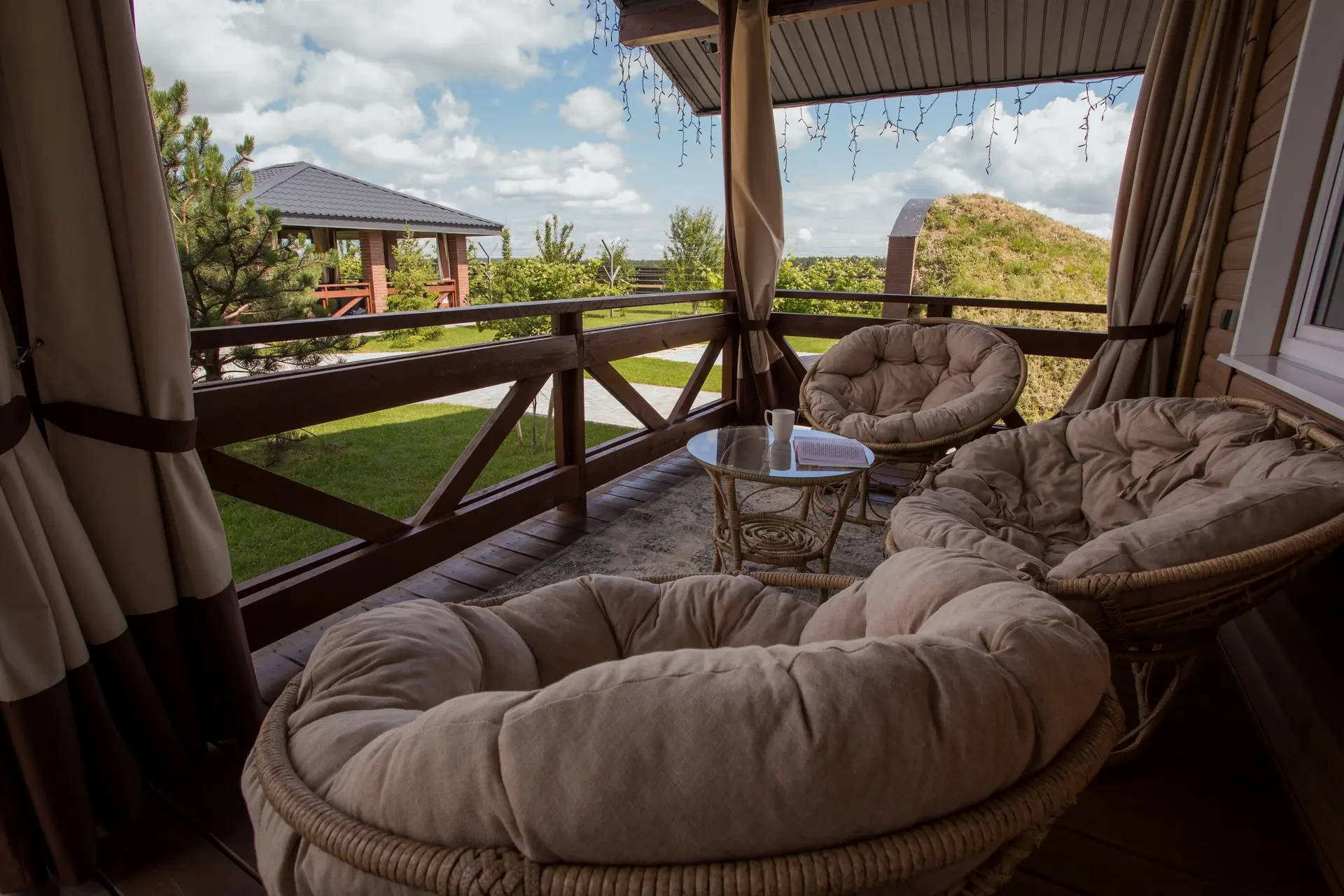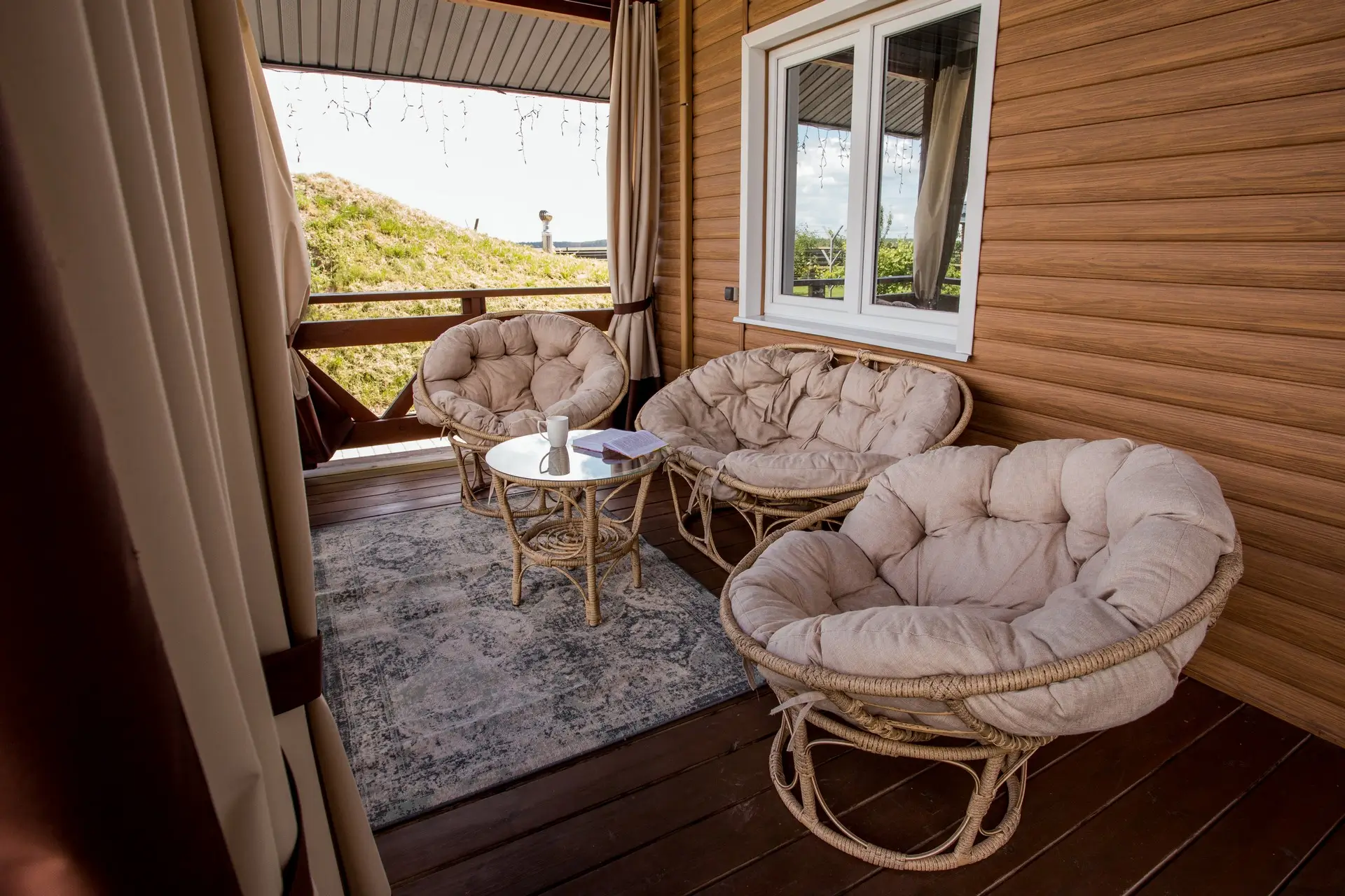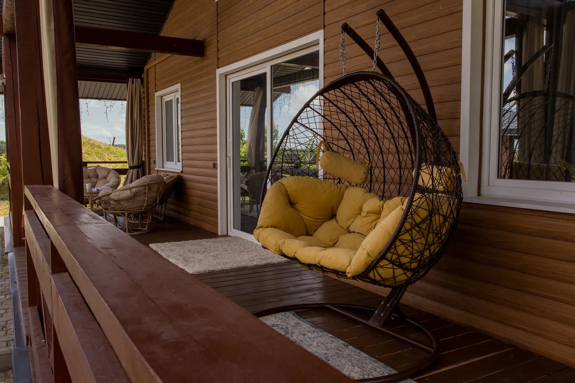 - Открытая терраса с мебелью.