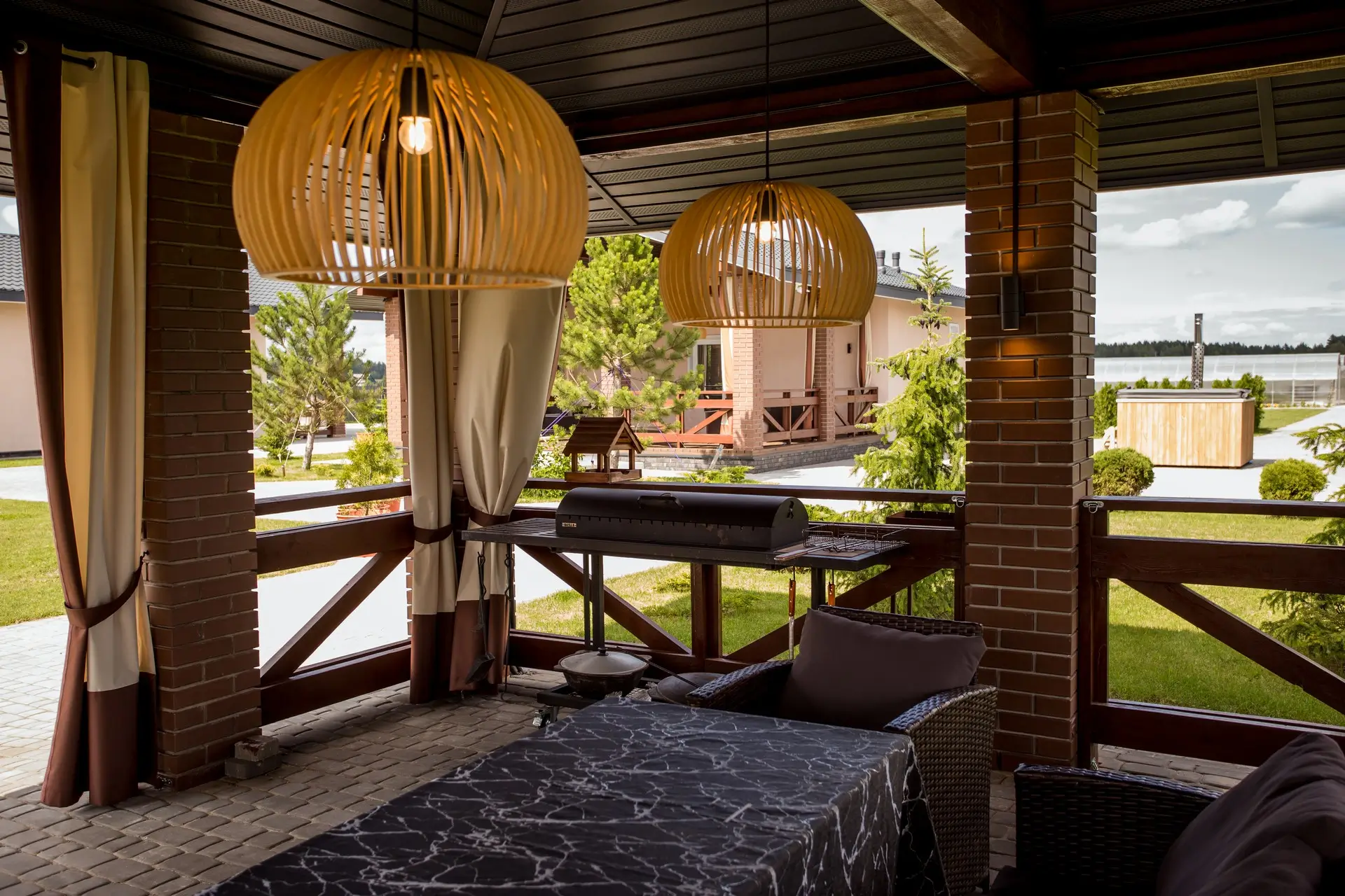 Просторная горячая купель с джакузи подарит вам ощущение уюта и тепла в любое время года. Идеально подходит для отдыха после насыщенного дня или романтического вечера под звездным небом.