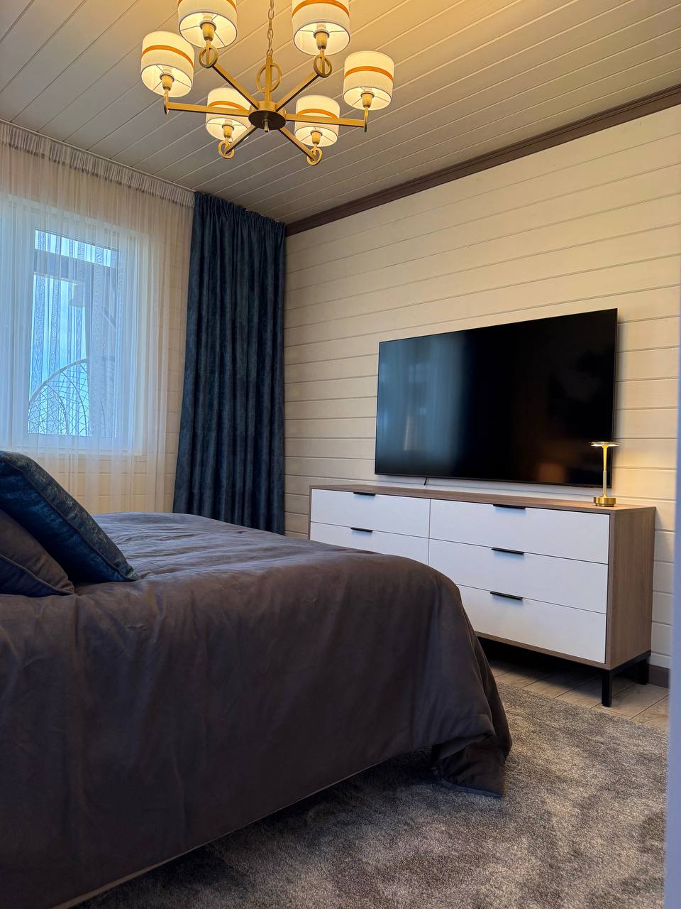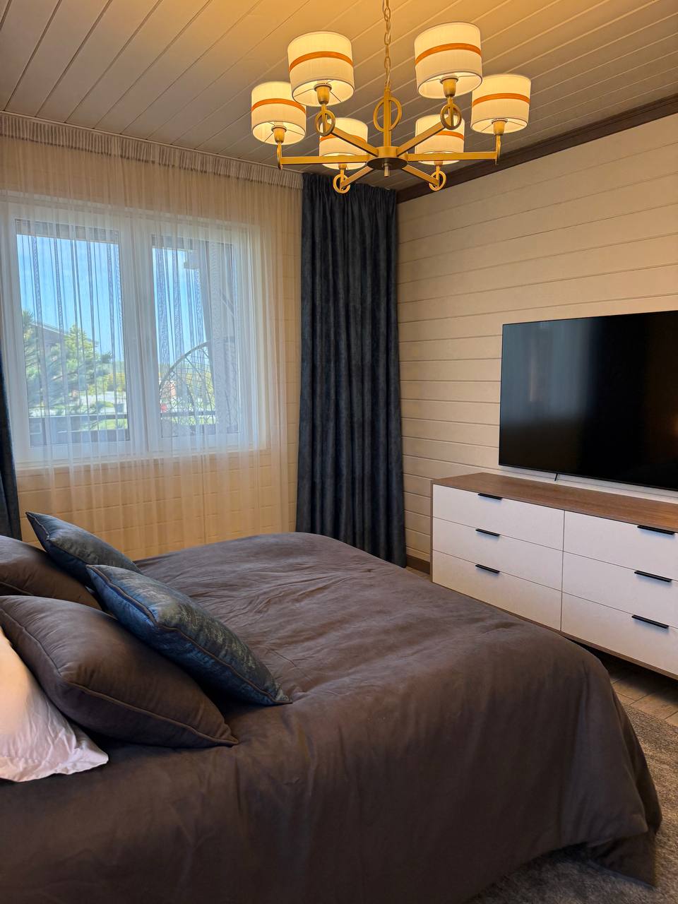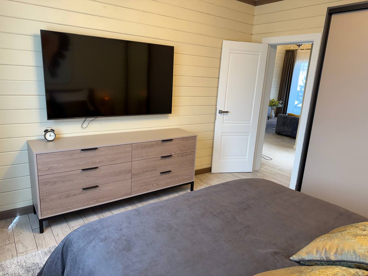 В гостиной и спальне телевизор OLED 75-дюймов с функцией SMART-TV.