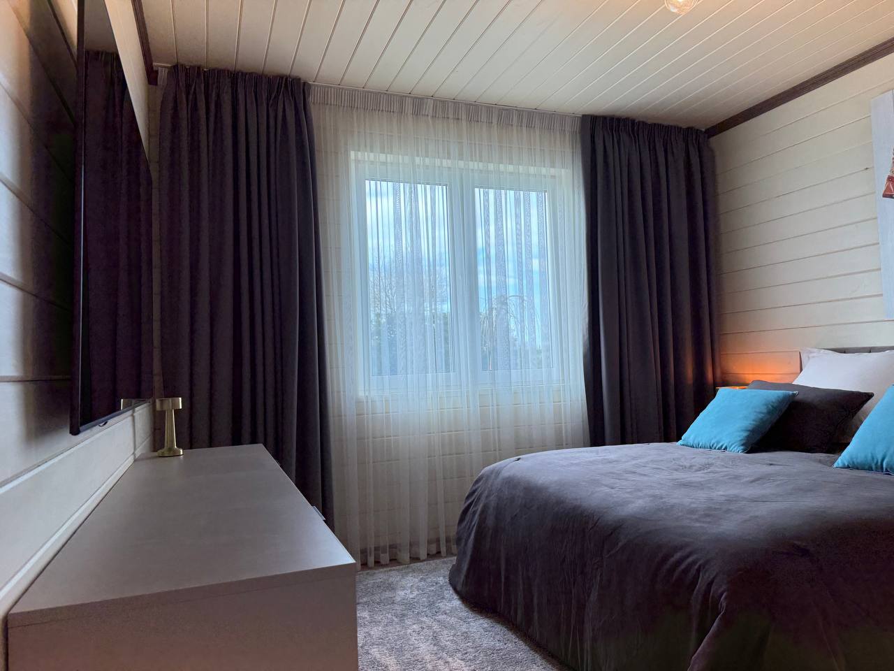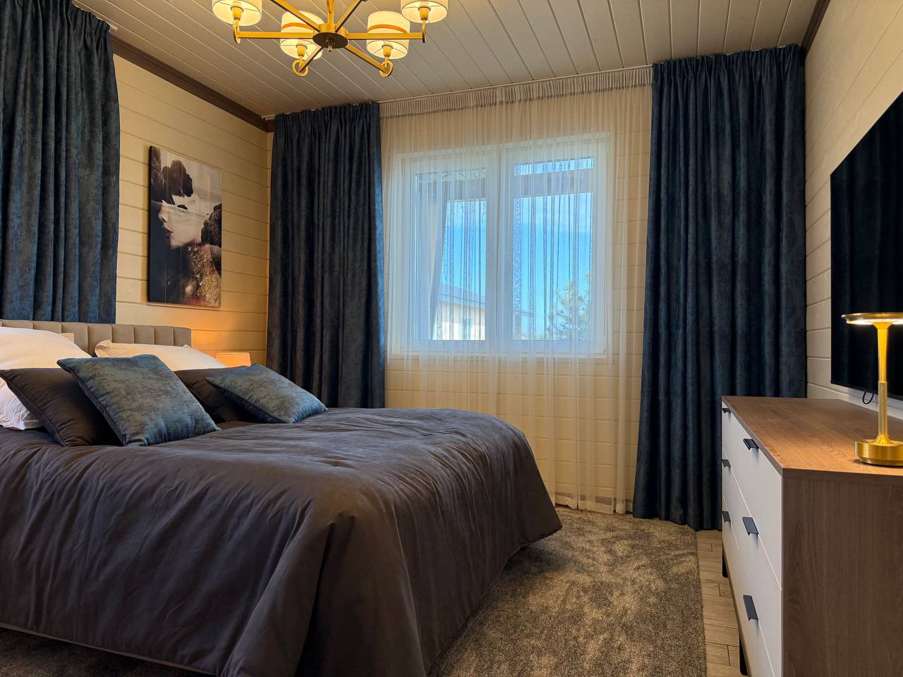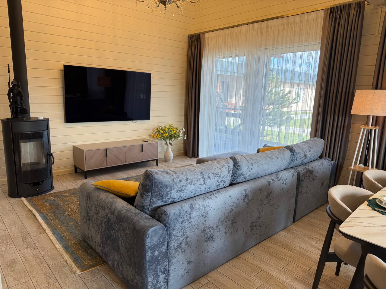 В гостиной и спальне телевизор OLED 75-дюймов с функцией SMART-TV.