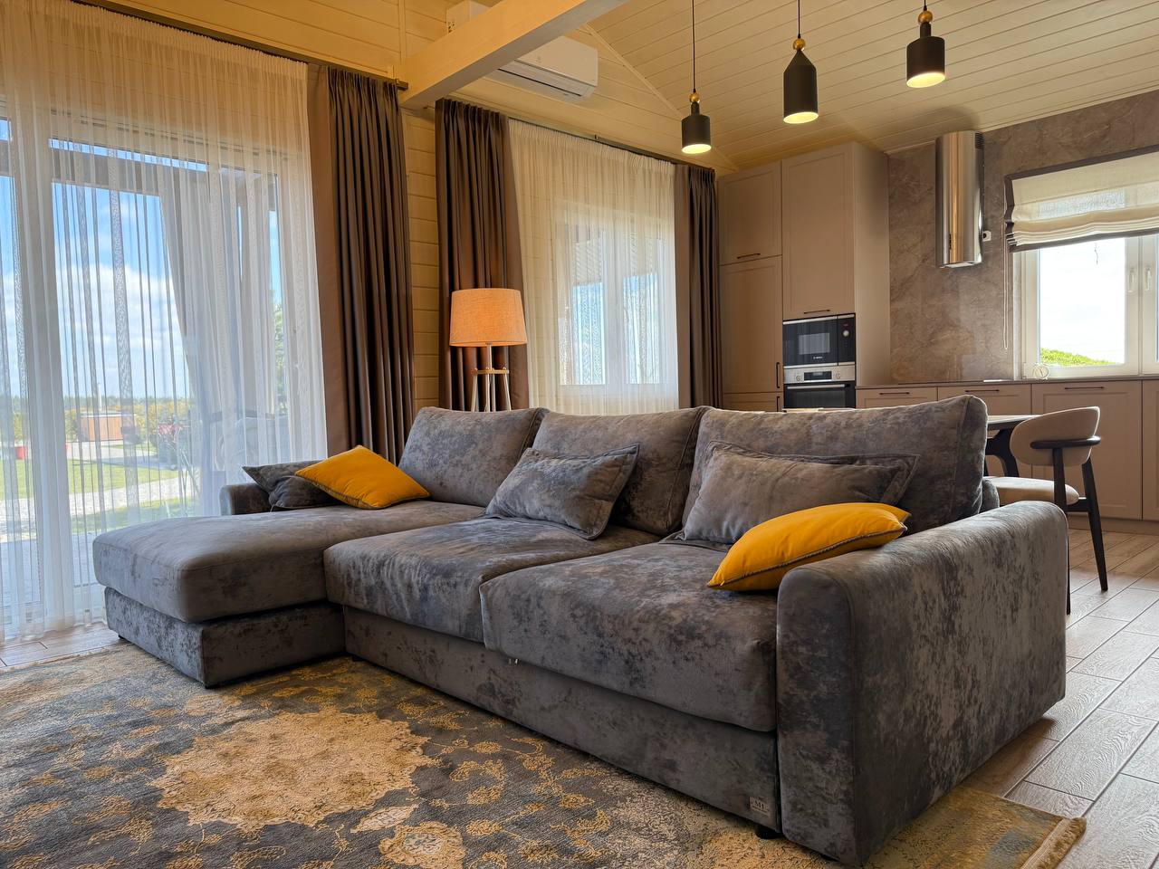 - Полностью оборудованная кухня с современной техникой.